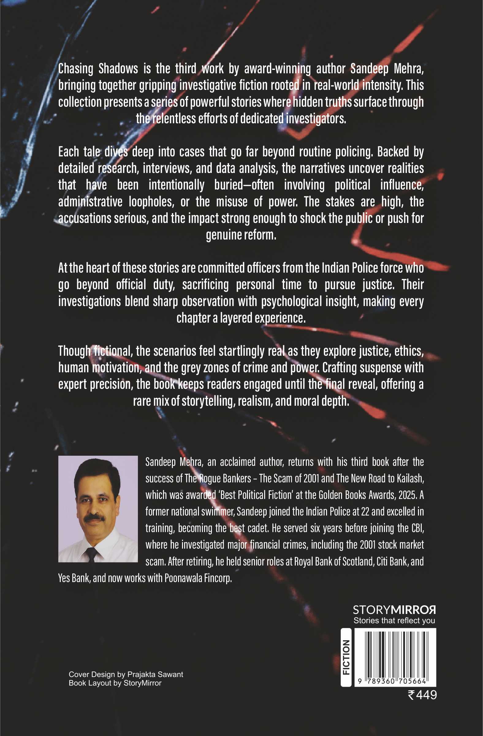 Chasing Shadows is the third work by award-winning author Sandeep Mehra, bringing together gripping investigative fiction rooted in real-world intensity. This collection presents a series of powerful stories where hidden truths surface through the relentless efforts of dedicated investigators.