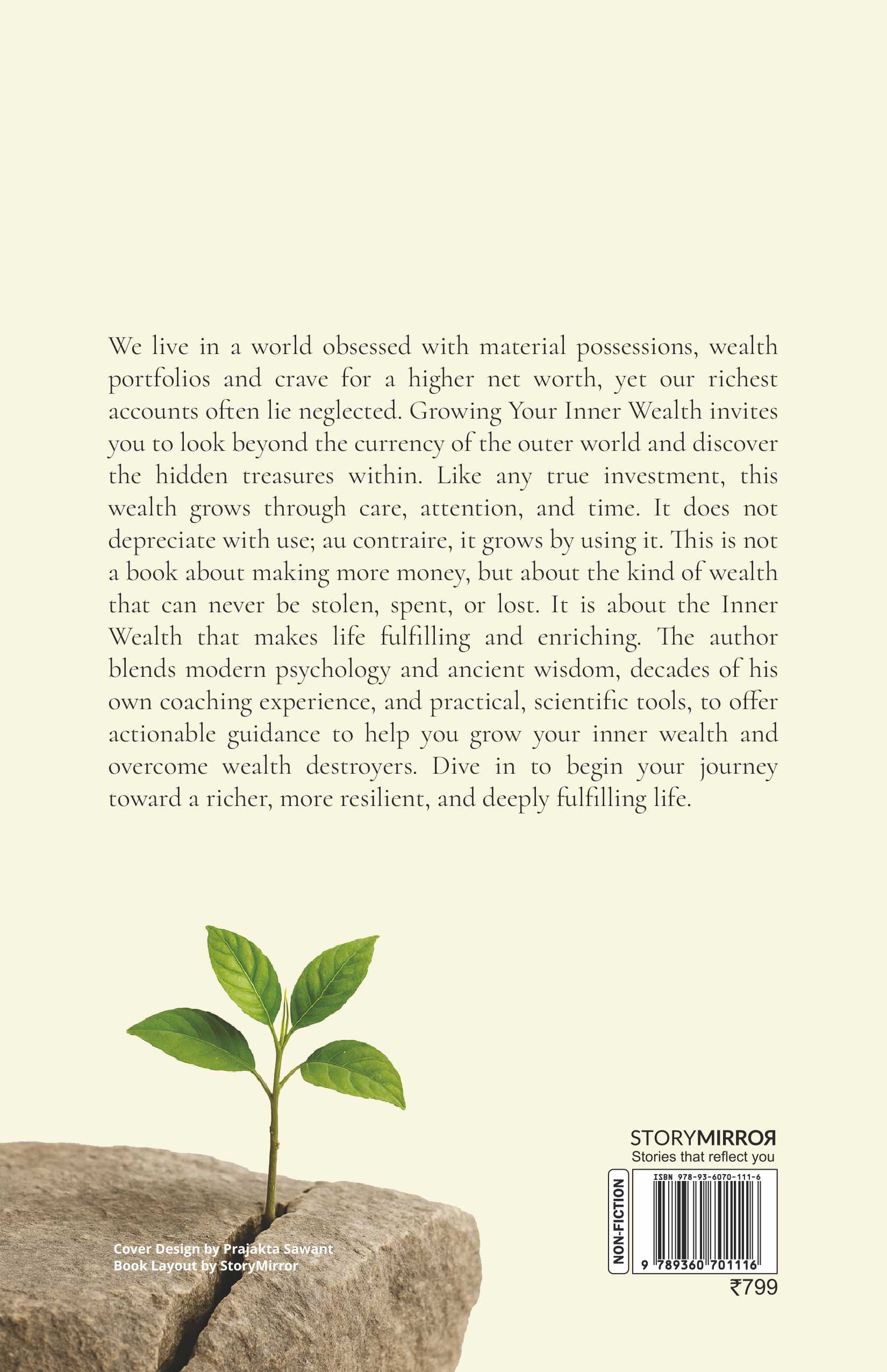 We live in a world obsessed with material possessions, wealth portfolios and crave for a higher net worth, yet our richest accounts often lie neglected. Growing Your Inner Wealth invites you to look beyond the currency of the outer world and discover the hidden treasures within. Like any true investment, this wealth grows through care, attention, and time. It does not depreciate with use; au contraire, it grows by using it. This is not a book about making more money, but about the kind of wealth that can never be stolen, spent, or lost. It is about the Inner Wealth that makes life fulfilling and enriching. The author blends modern psychology and ancient wisdom, decades of his own coaching experience, and practical, scientific tools, to offer actionable guidance to help you grow your inner wealth and overcome wealth destroyers. Dive in to begin your journey toward a richer, more resilient, and deeply fulfilling life.