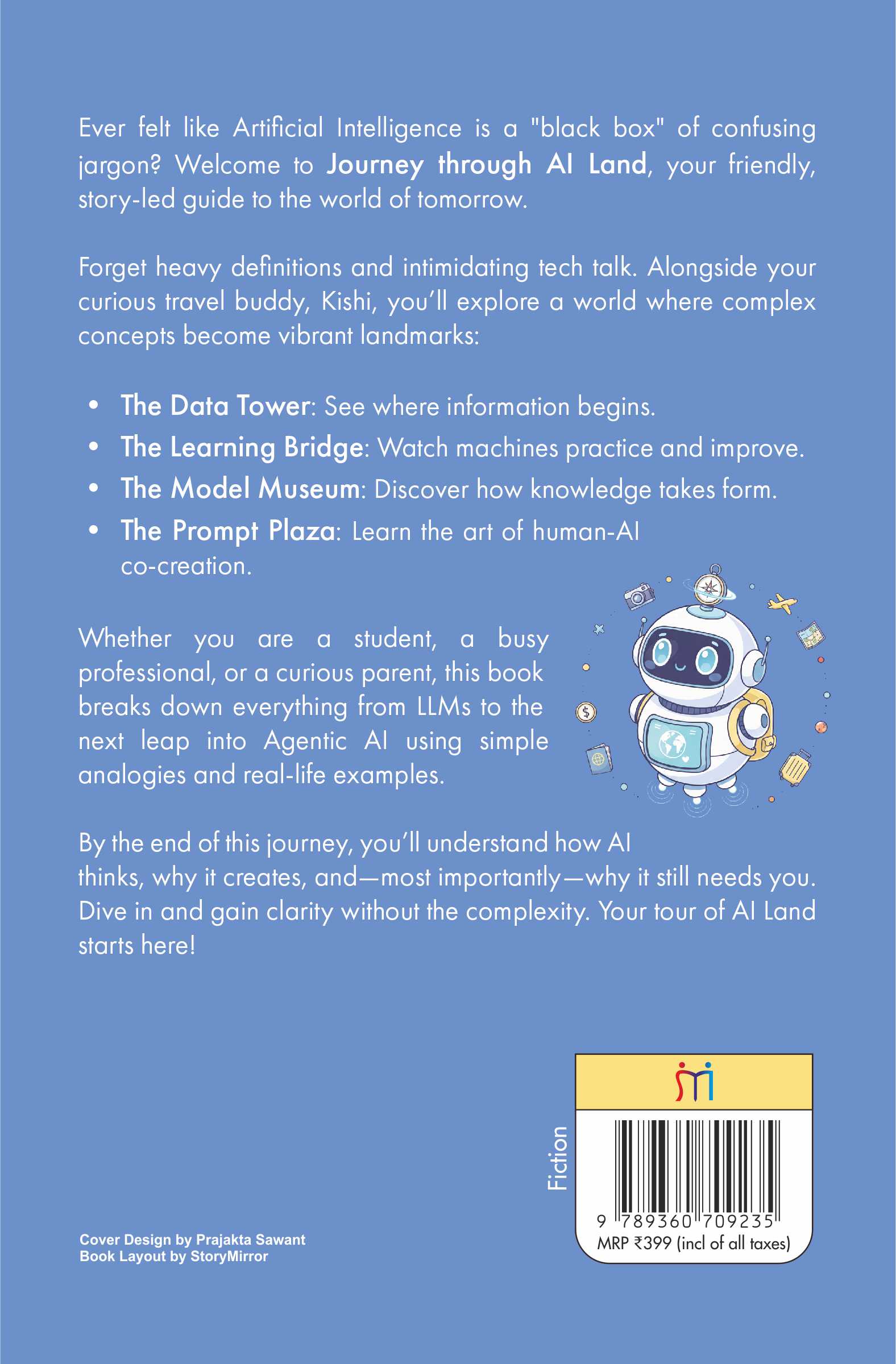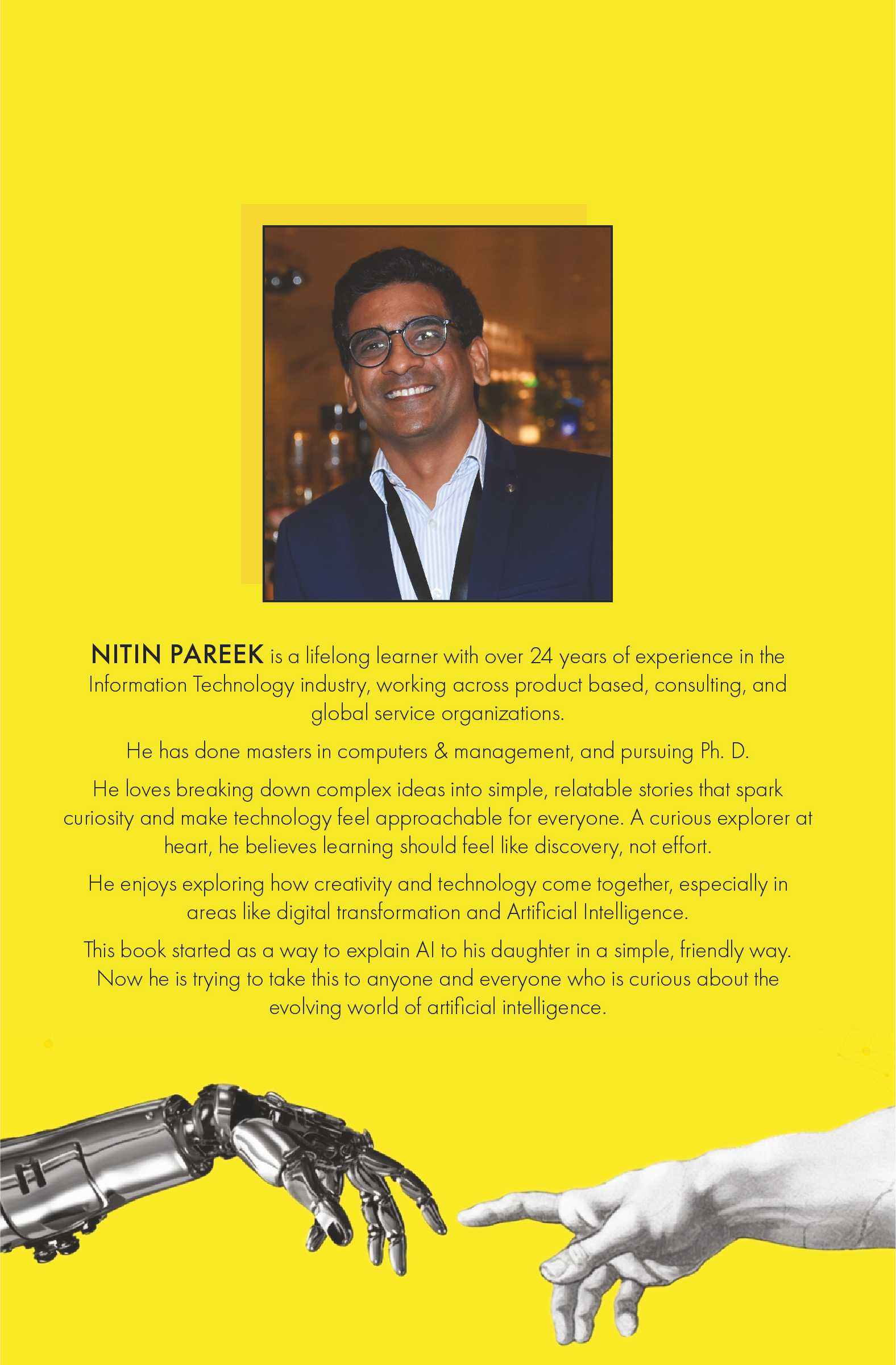 Instead of complex terms or coding, the book uses stories, metaphors, and easy examples to explain how AI learns, understands language, and supports human creativity.