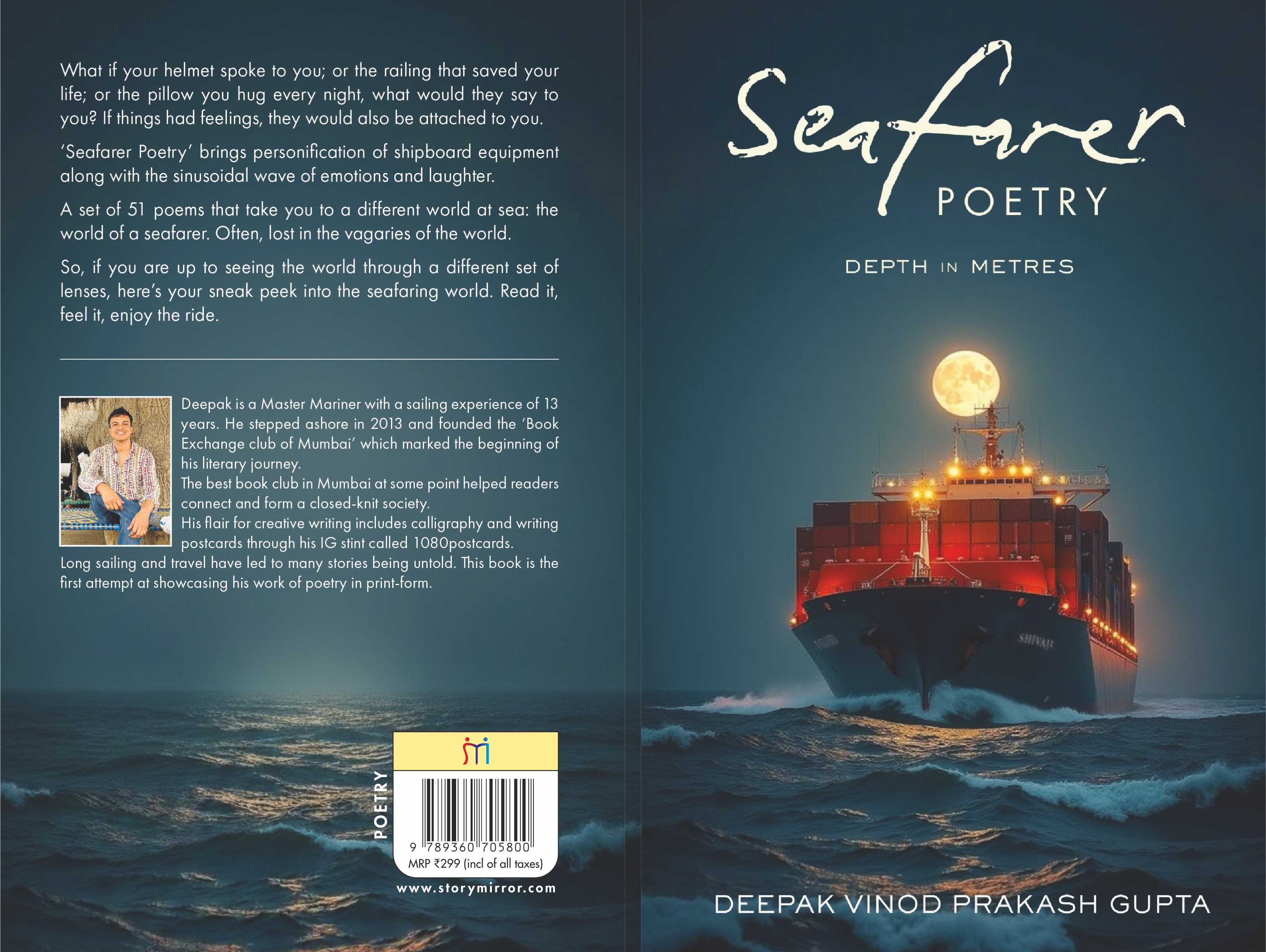Seafarer Poetry (Depth in Metres) is a deeply imaginative and emotionally rich collection of 51 poems that brings the unseen world of a seafarer to life. Through unique personification of everyday shipboard objects and moments, the book transforms ordinary experiences into powerful reflections.