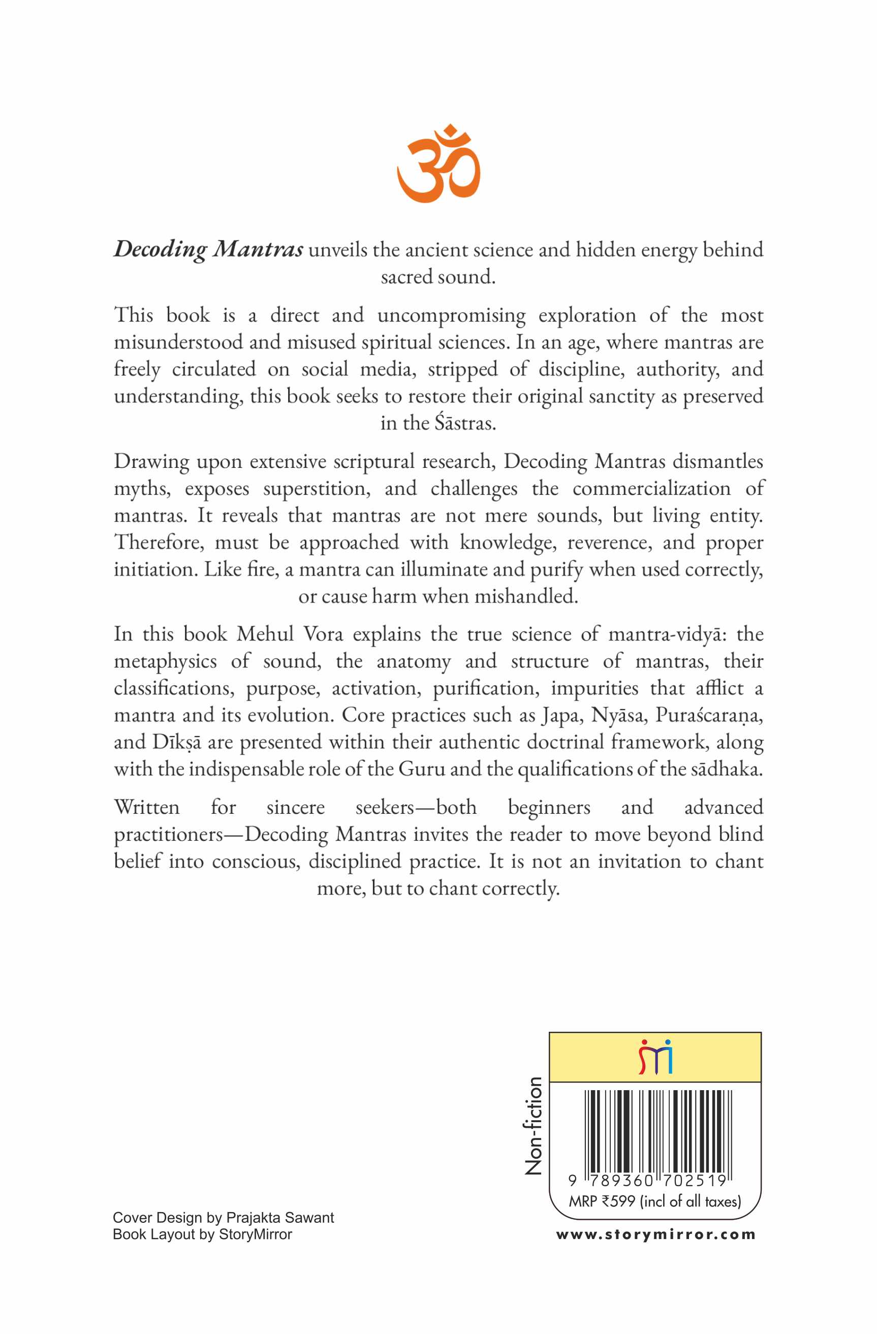Decoding Mantras: The Art, Science and Technique explores the true meaning and power of sacred sound in an age where mantras are often misunderstood or misused. Rooted in authentic scriptures and research, the book reveals that mantras are not just chants but powerful energies that require proper knowledge and discipline.