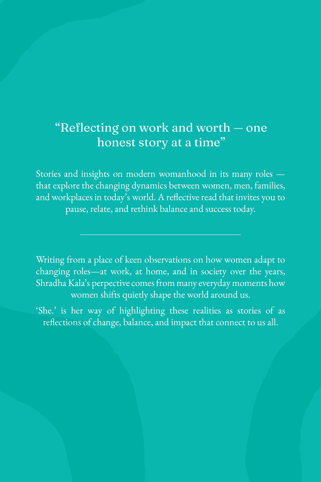 Writing from a place of keen observations on how women adapt to changing roles—at work, at home, and in society over the years, Shradha Kala’s perpective comes from many everyday moments how women shifts quietly shape the world around us.