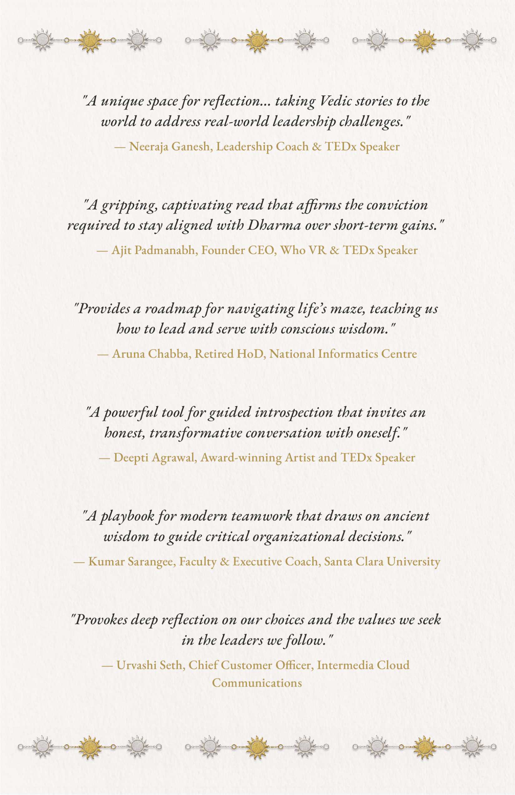 Vijay Gupta & Manisha Gupta bring a unique combination of practical business experience and deep understanding of Indian philosophical wisdom.